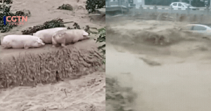 Cảnh tượng nghẹt thở trong trận lũ lịch sử tại Trung Quốc: Xe cộ, vật nuôi bị trôi như lá, hơn 10.000 người sơ tán