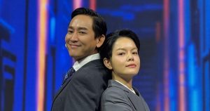 Không biết cặp đôi có “nhấm nháy” trước với nhau không mà ăn mặc tone-sur-tone một cách trùng hợp. Quốc Anh lựa chọn bộ suit màu đen bảnh bao và lịch sự, càng tôn thêm vóc dáng cao to như tạc tượng của anh. Đứng cạnh nhau thể hiện tiểu phẩm, netizen càng phải tấm tắc bộ đôi thật sự ăn ý, chemistry tràn trề khiến tin đồn “phim giả tình thật” lại râm ran trên sóng mạng.